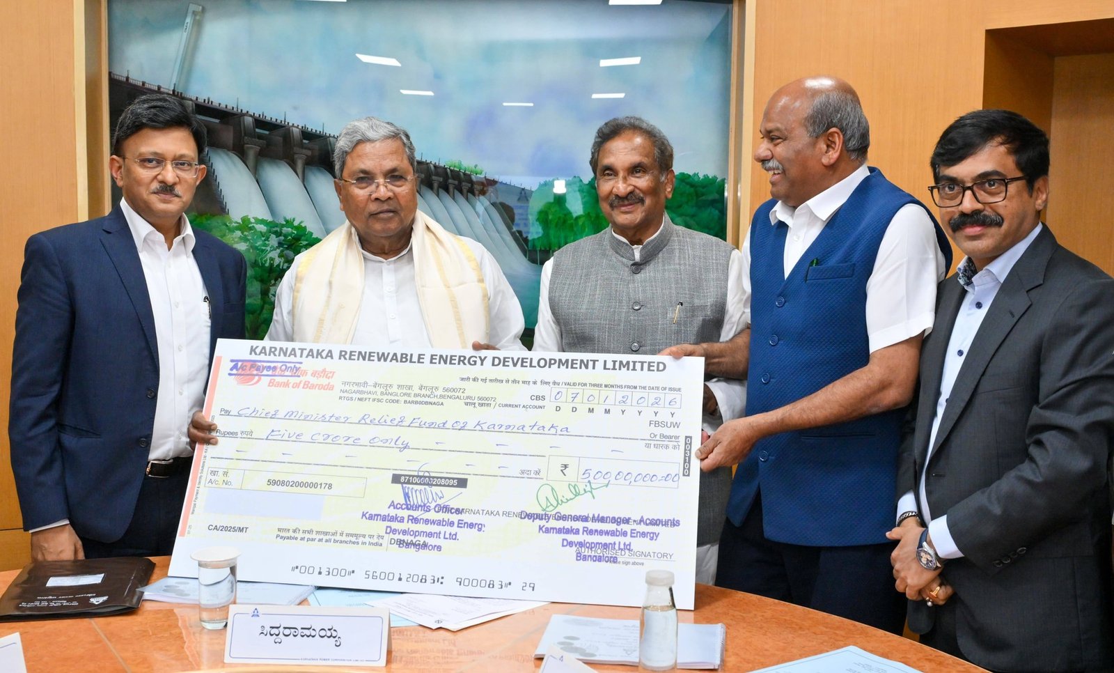 ಬೆಂಗಳೂರು: ಕರ್ನಾಟಕ ನವೀಕರಿಸಬಹುದಾದ ಇಂಧನ ಅಭಿವೃದ್ಧಿ ನಿಯಮಿತವು (KREDL) 2024-25ನೇ ಸಾಲಿನಲ್ಲಿ ಭರ್ಜರಿ ಸಾಧನೆ ಮಾಡಿದ್ದು, ಸರ್ಕಾರಕ್ಕೆ ಕೋಟ್ಯಂತರ ರೂಪಾಯಿ ಲಾಭಾಂಶವನ್ನು ಹಸ್ತಾಂತರಿಸಿದೆ. ಗುರುವಾರ ಮುಖ್ಯಮಂತ್ರಿ ಸಿದ್ದರಾಮಯ್ಯ ಅವರಿಗೆ ಇಂಧನ ಸಚಿವ ಕೆ.ಜೆ. ಜಾರ್ಜ್ ಅವರು ಲಾಭಾಂಶದ ಚೆಕ್ ಅನ್ನು ಹಸ್ತಾಂತರಿಸಿದರು.