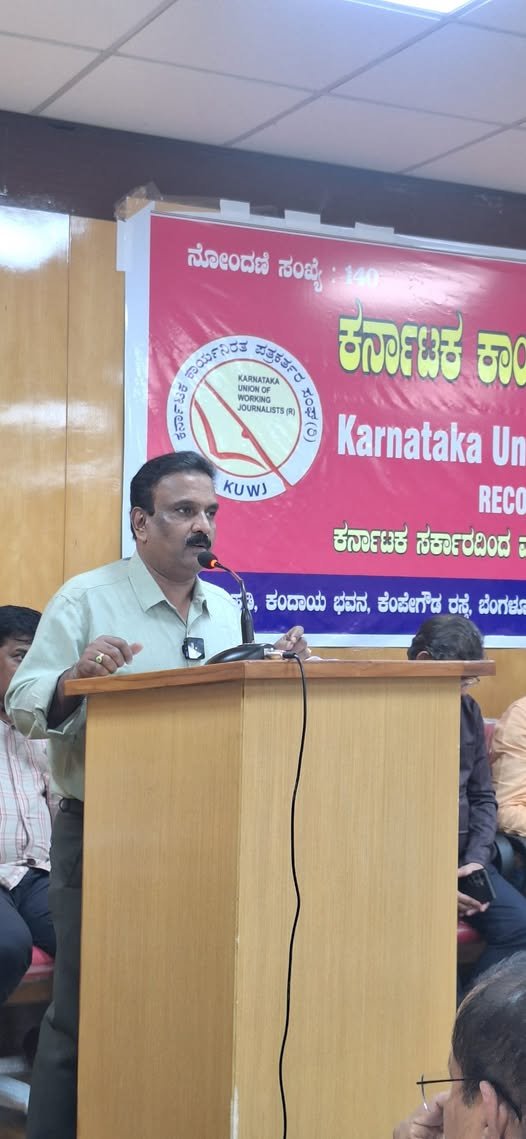 ಕರ್ನಾಟಕ ಕಾರ್ಯನಿರತ ಪತ್ರಕರ್ತರ ಸಂಘದ (KUWJ) ಕಚೇರಿಯಲ್ಲಿ ಆಯೋಜಿಸಲಾಗಿದ್ದ ರಾಜ್ಯೋತ್ಸವ ಪ್ರಶಸ್ತಿ ಪುರಸ್ಕೃತರು ಹಾಗೂ ನೂತನ ಮಾಹಿತಿ ಆಯುಕ್ತರಾದ ಪತ್ರಕರ್ತರಿಗೆ ಹಮ್ಮಿಕೊಂಡಿದ್ದ ಅಭಿನಂದನಾ ಸಮಾರಂಭದಲ್ಲಿ “ಪತ್ರಿಕೋದ್ಯಮವು ಪ್ರಜಾಪ್ರಭುತ್ವದ ನಾಲ್ಕನೇ ಸ್ತಂಭ. ಈ ಸ್ತಂಭವನ್ನು ಭದ್ರವಾಗಿ ಕಟ್ಟಿದವರನ್ನು ಗೌರವಿಸುವುದು ಎಂದರೆ ನಾವು ನಮ್ಮ ಸಂವಿಧಾನದ ಮೌಲ್ಯಗಳನ್ನು ಗೌರವಿಸಿದಂತೆ.” – ಕೆ.ವಿ. ಪ್ರಭಾಕರ್ ಅವರು ಮಾತನಾಡಿದರು.
