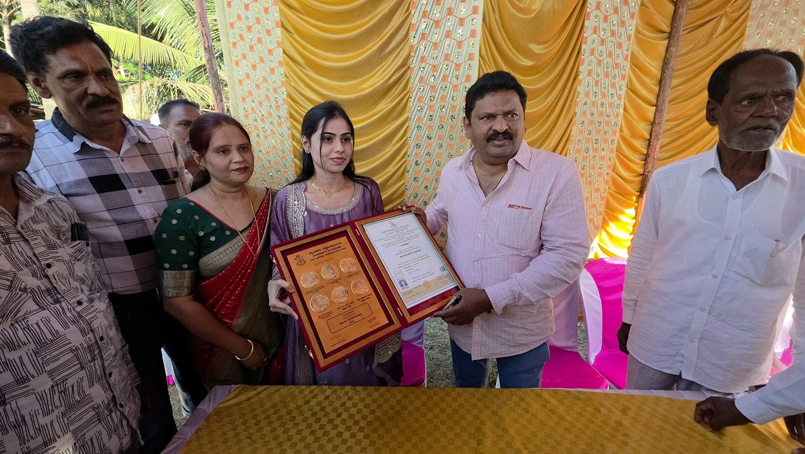 ಹುಣಸೂರು: ಮೈಸೂರು ವಿಶ್ವವಿದ್ಯಾನಿಲಯದ ಘಟಿಕೋತ್ಸವದಲ್ಲಿ ಬಿ.ಎಸ್ಸಿ (B.Sc) ವಿಭಾಗದಲ್ಲಿ 6 ಚಿನ್ನದ ಪದಕ ಹಾಗೂ 5 ನಗದು ಬಹುಮಾನಗಳನ್ನು ಪಡೆಯುವ ಮೂಲಕ ತಾಲ್ಲೂಕಿನ ಕೀರ್ತಿ ಹೆಚ್ಚಿಸಿದ ಮರೂರು ಗ್ರಾಮದ ಪ್ರತಿಭೆ ಕು. ಹಮೈನಾ ಟಿ. ಅವರನ್ನು ಶಾಸಕ ಹೆಚ್.ಪಿ. ಮಂಜುನಾಥ್ ಅವರು ಇಂದು ಸನ್ಮಾನಿಸಿದರು.