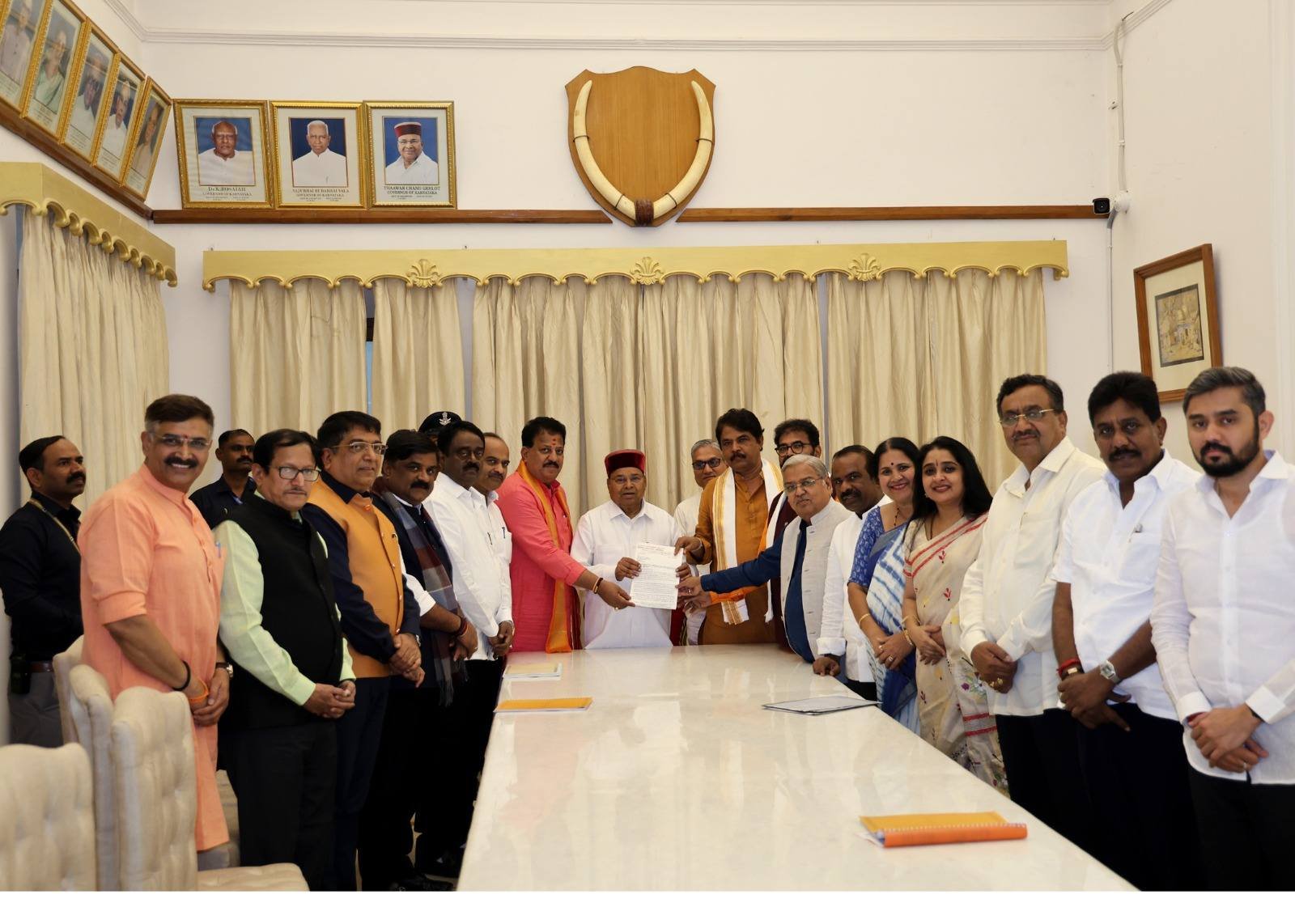 ಬೆಂಗಳೂರು: ಬೆಳಗಾವಿಯ ಚಳಿಗಾಲದ ಅಧಿವೇಶನದಲ್ಲಿ ಪ್ರತಿಪಕ್ಷಗಳ ತೀವ್ರ ವಿರೋಧದ ನಡುವೆಯೂ ಅಂಗೀಕಾರಗೊಂಡಿರುವ ‘ದ್ವೇಷ ಭಾಷಣ ಪ್ರತಿಬಂಧಕ ಮಸೂದೆ’ಗೆ ಅಂಕಿತ ಹಾಕಬಾರದೆಂದು ಆಗ್ರಹಿಸಿ ಬಿಜೆಪಿ ನಿಯೋಗವು ಸೋಮವಾರ ರಾಜ್ಯಪಾಲ ಥಾವರ್ಚಂದ್ ಗೆಹ್ಲೋಟ್ ಅವರಿಗೆ ಮನವಿ ಸಲ್ಲಿಸಿತು.