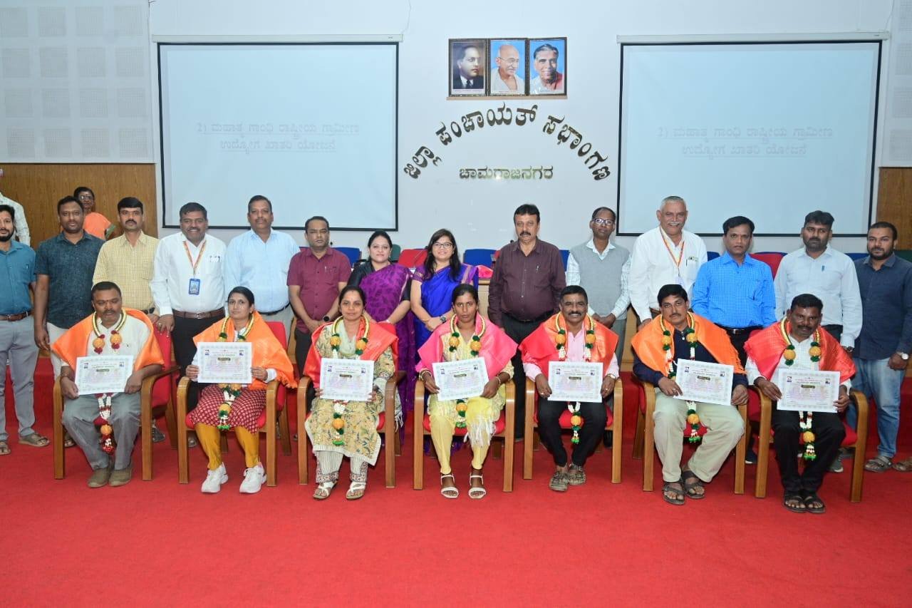 ಇದೇ ಸಂದರ್ಭದಲ್ಲಿ ನರೇಗಾ ಯೋಜನೆಯಲ್ಲಿ 100% ಪ್ರಗತಿ ಸಾಧಿಸಿದ ಹಾಗೂ ತೆರಿಗೆ ವಸೂಲಾತಿಯಲ್ಲಿ ಉತ್ತಮ ಸಾಧನೆ ಮಾಡಿದ ಗ್ರಾಮ ಪಂಚಾಯಿತಿಗಳು ಮತ್ತು ಗಾಂಧಿ ಗ್ರಾಮ ಪುರಸ್ಕಾರಕ್ಕೆ ಭಾಜನರಾದ ಪಿಡಿಒ ಹಾಗೂ ತಾಂತ್ರಿಕ ಸಹಾಯಕರನ್ನು ಸನ್ಮಾನಿಸಿ ಗೌರವಿಸಲಾಯಿತು.