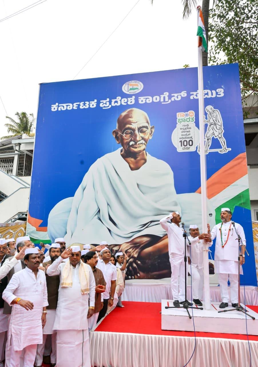 ಬೆಂಗಳೂರು: ದೇಶದ 77ನೇ ಗಣರಾಜ್ಯೋತ್ಸವದ ಅಂಗವಾಗಿ ಇಂದು ಬೆಂಗಳೂರಿನ ಕ್ವೀನ್ಸ್ ರಸ್ತೆಯಲ್ಲಿರುವ ಕೆಪಿಸಿಸಿ ಕಚೇರಿಯಲ್ಲಿ ಸಂಭ್ರಮದ ಧ್ವಜಾರೋಹಣ ಕಾರ್ಯಕ್ರಮ ಜರುಗಿತು. ಉಪಮುಖ್ಯಮಂತ್ರಿ ಹಾಗೂ ಕೆಪಿಸಿಸಿ ಅಧ್ಯಕ್ಷರಾದ ಡಿ.ಕೆ. ಶಿವಕುಮಾರ್ ಅವರು ರಾಷ್ಟ್ರಧ್ವಜವನ್ನು ನೆರವೇರಿಸಿ, ಸ್ವಾತಂತ್ರ್ಯ ಹೋರಾಟಗಾರರ ತ್ಯಾಗ ಮತ್ತು ಬಲಿದಾನಗಳನ್ನು ಸ್ಮರಿಸಿದರು.