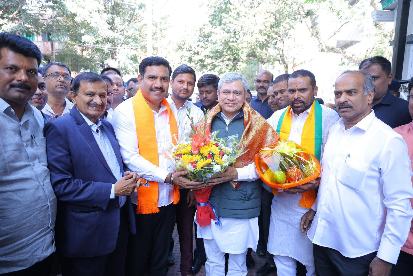ಬೆಂಗಳೂರು: ಕೇಂದ್ರ ರೈಲ್ವೆ, ವಾರ್ತಾ ಮತ್ತು ಪ್ರಸಾರ, ಹಾಗೂ ಎಲೆಕ್ಟ್ರಾನಿಕ್ಸ್ ಮತ್ತು ಮಾಹಿತಿ ತಂತ್ರಜ್ಞಾನ ಸಚಿವರಾದ ಶ್ರೀ ಅಶ್ವಿನಿ ವೈಷ್ಣವ್ ಅವರು ಇಂದು ಸಿಲಿಕಾನ್ ಸಿಟಿಗೆ ಭೇಟಿ ನೀಡಿದರು. ಈ ಸಂದರ್ಭದಲ್ಲಿ ರಾಜ್ಯ ಬಿಜೆಪಿ ಅಧ್ಯಕ್ಷರಾದ ಶ್ರೀ ವಿಜಯೇಂದ್ರ ಯಡಿಯೂರಪ್ಪ ಅವರು ಸಚಿವರನ್ನು ಆತ್ಮೀಯವಾಗಿ ಬರಮಾಡಿಕೊಂಡರು.