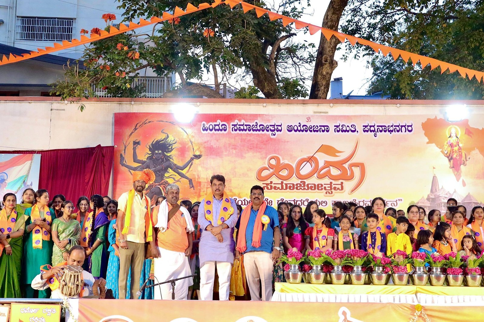 ಬೆಂಗಳೂರು: ಪದ್ಮನಾಭನಗರ ವಿಧಾನಸಭಾ ಕ್ಷೇತ್ರದಲ್ಲಿ ಇಂದು ಅತ್ಯಂತ ಸಡಗರ ಹಾಗೂ ಶ್ರದ್ಧಾಭಕ್ತಿಗಳಿಂದ ‘ಹಿಂದೂ ಸಮಾಜೋತ್ಸವ’ ಕಾರ್ಯಕ್ರಮ ಜರುಗಿತು. ಮಾಜಿ ಉಪಮುಖ್ಯಮಂತ್ರಿ ಹಾಗೂ ವಿರೋಧ ಪಕ್ಷದ ನಾಯಕರಾದ ಆರ್. ಅಶೋಕ ಅವರು ಈ ಭವ್ಯ ಕಾರ್ಯಕ್ರಮದಲ್ಲಿ ಪಾಲ್ಗೊಂಡು ಸಂಭ್ರಮಕ್ಕೆ ಸಾಕ್ಷಿಯಾದರು.