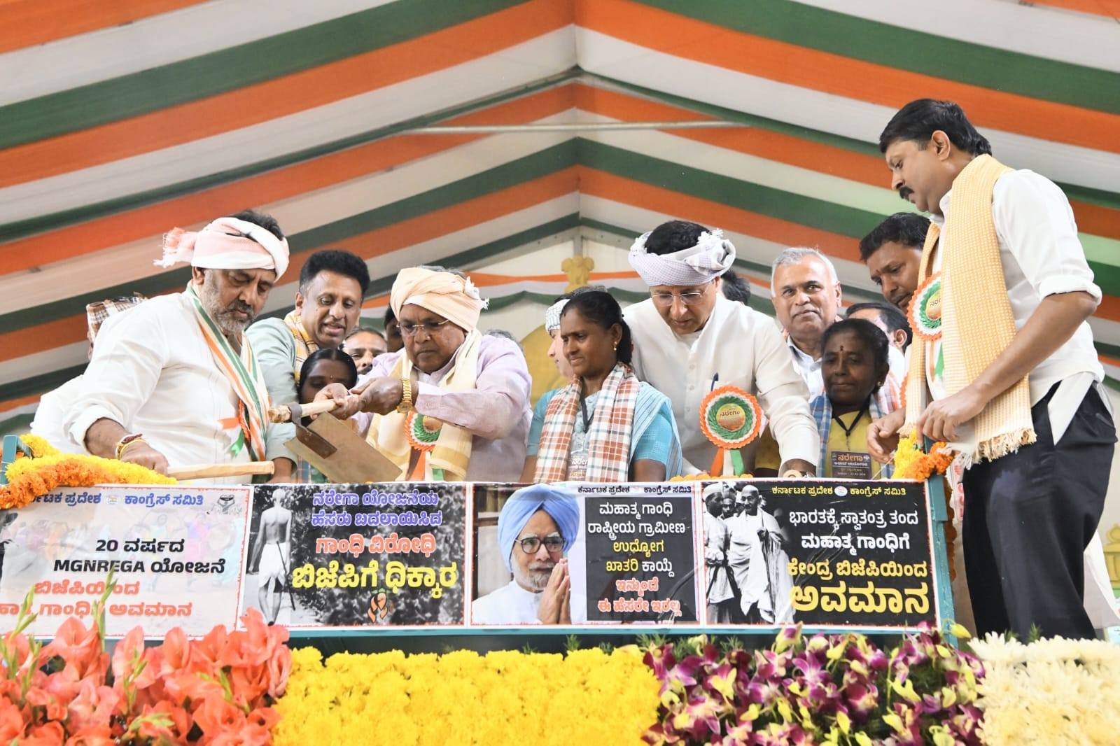 “2005 ರಲ್ಲಿ ಅಂದಿನ ಪ್ರಧಾನಿ ಮನಮೋಹನ್ ಸಿಂಗ್ ಅವರು ಸೋನಿಯಾ ಗಾಂಧಿಯವರ ಮಾರ್ಗದರ್ಶನದಲ್ಲಿ ಜಾರಿಗೆ ತಂದ ಮನರೇಗಾ ಕಾಯ್ದೆಯು ಕೂಲಿಕಾರರು, ಆದಿವಾಸಿಗಳು, ಸಣ್ಣ ರೈತರು ಮತ್ತು ಮಹಿಳೆಯರಿಗೆ ಆರ್ಥಿಕ ಭದ್ರತೆ ನೀಡಿತ್ತು. ಸುಮಾರು 12.16 ಕೋಟಿ ಜನರು ಇದರ ಲಾಭ ಪಡೆಯುತ್ತಿದ್ದರು. ಅದರಲ್ಲಿ 53% ಮಹಿಳೆಯರು, 17% ಪರಿಶಿಷ್ಟ ಜಾತಿ ಮತ್ತು 11% ಪರಿಶಿಷ್ಟ ಪಂಗಡದ ಜನರಿದ್ದರು. ಇಂದು ಮೋದಿಯವರ ಸರ್ಕಾರ ಈ ಎಲ್ಲರ ಬದುಕುವ ಹಕ್ಕನ್ನು ಕಸಿದುಕೊಂಡಿದೆ,” ಎಂದು ಸಿಎಂ ಬೇಸರ ವ್ಯಕ್ತಪಡಿಸಿದರು.