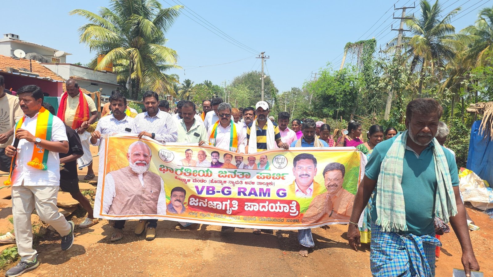 ಹೊನ್ನಾಳಿ: ಪ್ರಧಾನಮಂತ್ರಿ ನರೇಂದ್ರ ಮೋದಿ ಅವರ ಮಹತ್ವಾಕಾಂಕ್ಷಿ ಯೋಜನೆಗಳನ್ನು ಜನಸಾಮಾನ್ಯರಿಗೆ ತಲುಪಿಸುವ ಉದ್ದೇಶದ ‘ವಿಕಸಿತ ಭಾರತ ಸಂಕಲ್ಪ ಯಾತ್ರೆ’ (VBGRAMG) ಅಭಿಯಾನದ ಎರಡನೇ ಹಂತದ ಜನಜಾಗೃತಿ ಪಾದಯಾತ್ರೆಯನ್ನು ಮಾಜಿ ಶಾಸಕರಾದ ಎಂ.ಪಿ. ರೇಣುಕಾಚಾರ್ಯ ಅವರು ಇಂದು ಯಶಸ್ವಿಯಾಗಿ ನಡೆಸಿದರು.