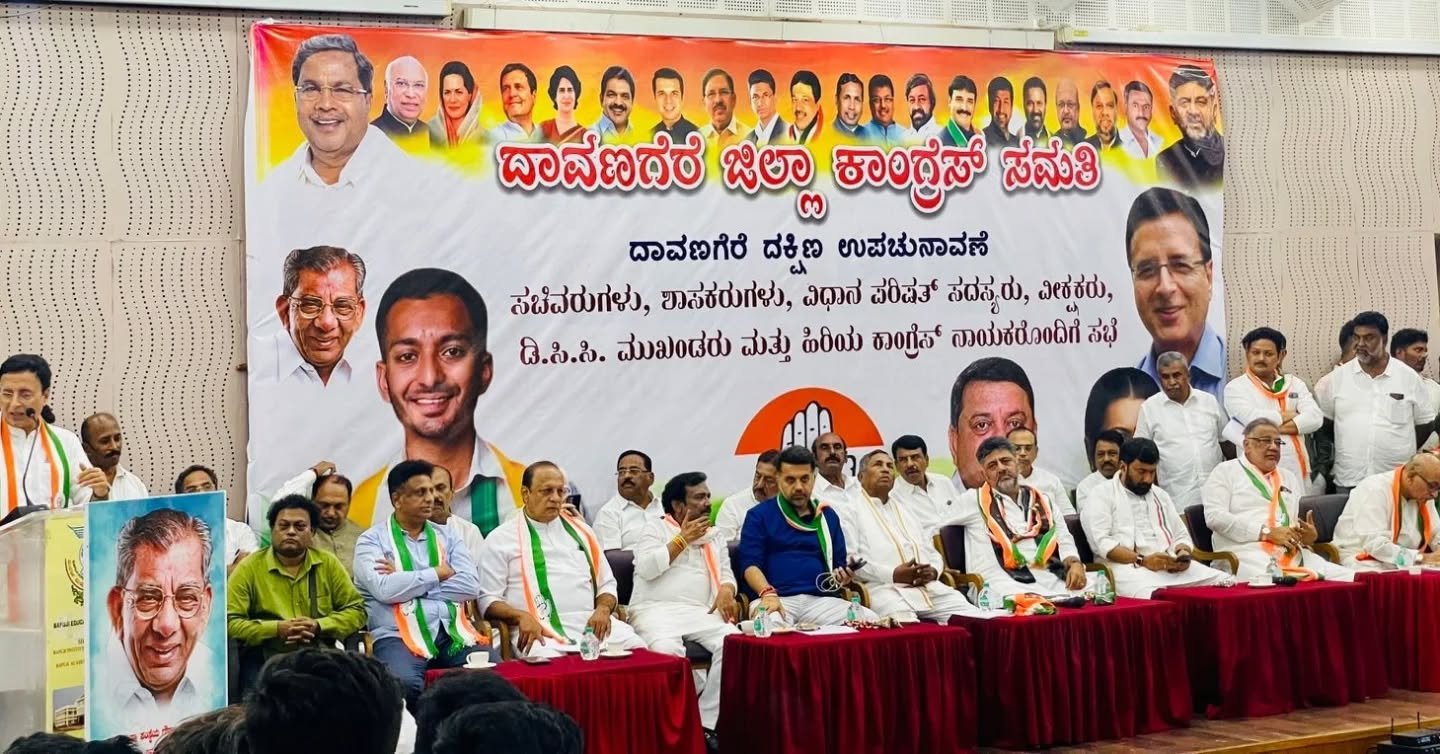 ದಾವಣಗೆರೆ: ದಾವಣಗೆರೆ ದಕ್ಷಿಣ ವಿಧಾನಸಭಾ ಕ್ಷೇತ್ರದ ಉಪಚುನಾವಣೆ ಹಿನ್ನೆಲೆಯಲ್ಲಿ ಕಾಂಗ್ರೆಸ್ ಪಕ್ಷವು ತನ್ನ ಚುನಾವಣಾ ಚಟುವಟಿಕೆಗಳನ್ನು ತೀವ್ರಗೊಳಿಸಿದೆ. ಇಂದು ಎಐಸಿಸಿ ಪ್ರಧಾನ ಕಾರ್ಯದರ್ಶಿಗಳಾದ ರಣದೀಪ್ ಸಿಂಗ್ ಸುರ್ಜೇವಾಲ ಅವರ ಮಾರ್ಗದರ್ಶನದಲ್ಲಿ, ಸಚಿವರಾದ ಕೆ.ಎಚ್. ಮುನಿಯಪ್ಪ ಅವರ ನೇತೃತ್ವದಲ್ಲಿ ಪ್ರಮುಖ ನಾಯಕರ ಮಹತ್ವದ ಸಭೆ ನಡೆಯಿತು.