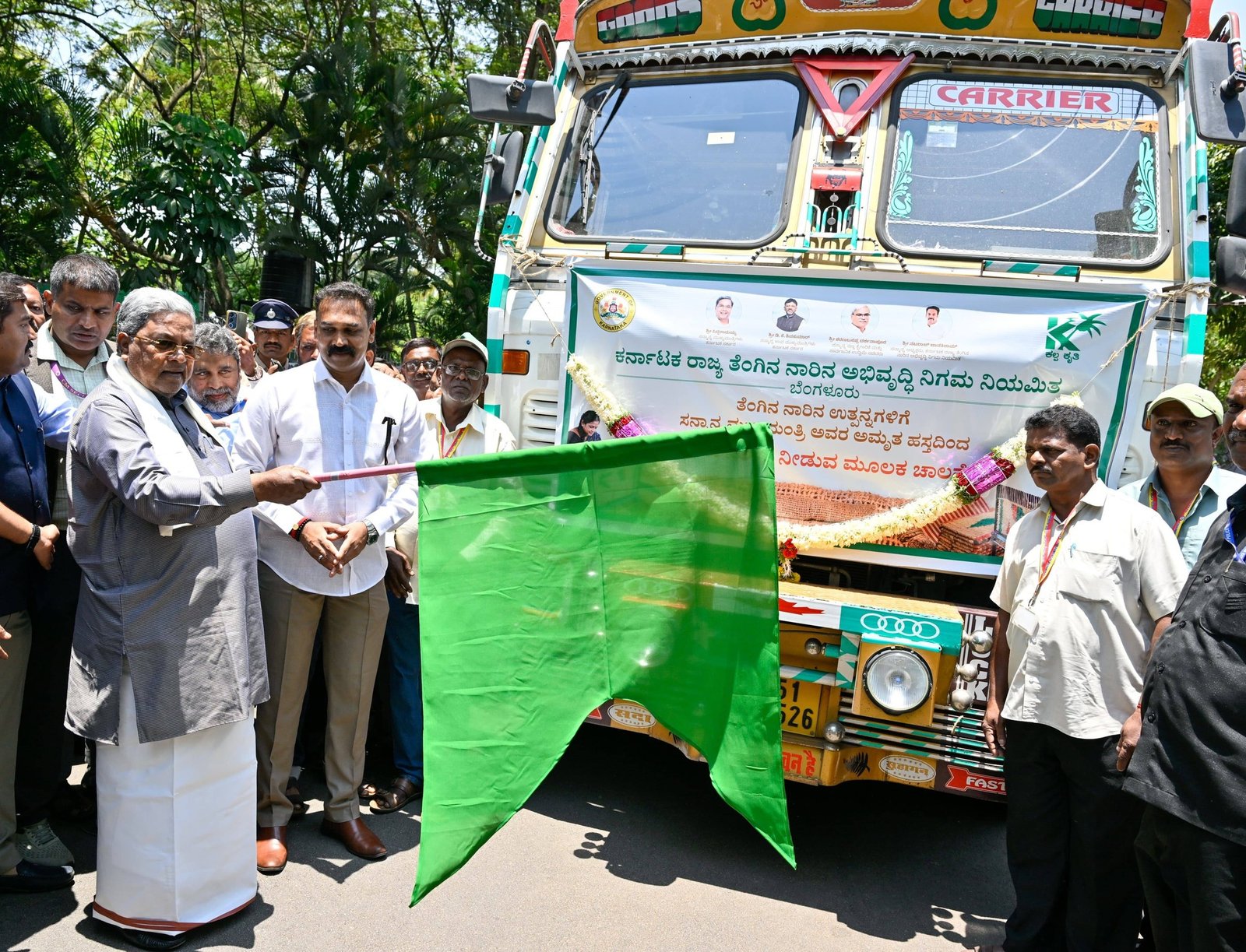 ರಾಜ್ಯದ ತೆಂಗಿನ ನಾರಿನ ಉತ್ಪನ್ನಗಳಿಗೆ ದೆಹಲಿ ಮಾರುಕಟ್ಟೆ: ರಫ್ತು ವಾಹನಕ್ಕೆ ಮುಖ್ಯಮಂತ್ರಿ ಸಿದ್ದರಾಮಯ್ಯ ಚಾಲನೆ